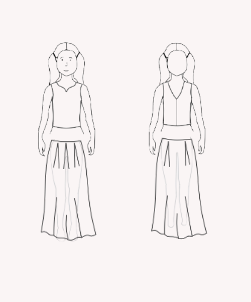 Haut à encolure cœur · Jupe à plis plats